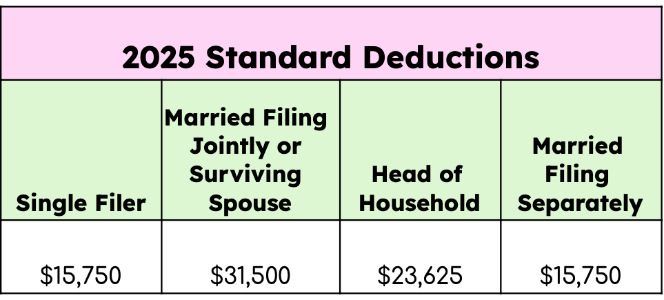 If our imaginary taxpayer who is a single filer and made $60,000 of taxable income in 2025 takes the standard deduction of $15,750, this means their $60,000 will be viewed as $44,250. With this, they’ll no longer be in the 22% tax bracket because it starts at $48,476.